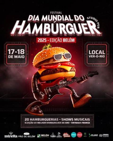 De sabor universal e amado pelo mundo inteiro, o hambúrguer é uma das comidas mais consumidas no planeta e para celebrar o seu dia, Belém vai receber a 3ª edição do Festival Dia Mundial do Hambúrguer neste final de semana, nos dias 17 e 18 de maio de 2025, no complexo do Ver-o-rio, a partir das 16h, com entrada franca para o público apreciar um evento gigante com a grande novidade de 20 hamburguerias participantes nesta edição, que conta ainda com shows musicais, eleição de melhor hambúrguer do ano e muito mais.