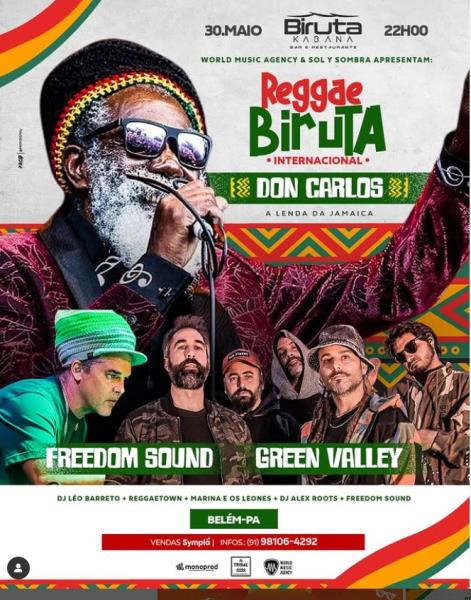 Com uma carreira que ultrapassa quatro décadas, Don Carlos é uma das vozes mais marcantes do Reggae jamaicano. Fundador do grupo Black Uhuru e autor de hits imortais como "Just a Passing Glance" e "Harvest Time", ele é referência obrigatória para gerações de fãs e artistas do gênero. Esta será a segunda vez que o artista se apresenta em Belém do Pará, trazendo toda a força e espiritualidade do seu repertório.