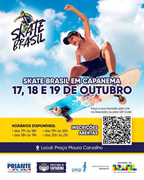 Nos dias 17, 18 e 19 de outubro, a Praça Moura Carvalho vai ser o ponto de encontro da garotada para oficinas e atividades voltadas ao mundo do skate.
