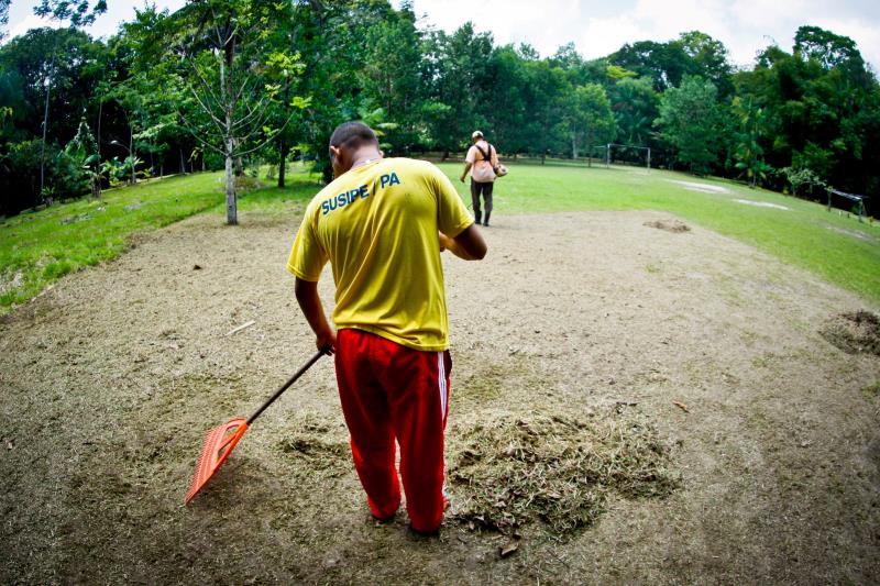 Parceria - O Jardim das Oliveiras conta com uma equipe de 30 funcionários próprios e mais de 60 voluntários, que atendem 100 alunos na educação infantil, durante todo o dia, e 90 crianças e adolescentes no contraturno da escola, na sede do grupo, localizada no bairro Castanheira, em Belém. O sítio em Benevides sedia eventos semanais e atividades educacionais e espirituais. “Temos dificuldades para manter um espaço tão grande bem conservado. Quando descobrimos que poderíamos contar com a ajuda da Susipe, através desse projeto social, entramos em contato para solicitar”, informou Luís Cláudio Rangel, coordenador administrativo do grupo.