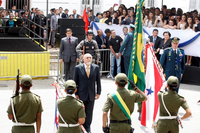 Ao final da revista à tropa, o coronel César Melo conduziu o governador ao dispositivo de honra, onde ele foi recebido por sua esposa, Ana Jatene; o vice-governador Zequinha Marinho e sua esposa, Júlia Maria da Cruz Marinho; o deputado estadual e presidente da Alepa, Márcio Miranda; a desembargadora Luzia Nadja Guimarães Nascimento, presidente do Tribunal de Justiça do Estado do Pará; Zenaldo Coutinho, prefeito de Belém; Marco Antônio Ferreira da Neves, procurador Geral de Justiça do Estado do Pará, e pelo senador Flexa Ribeiro.