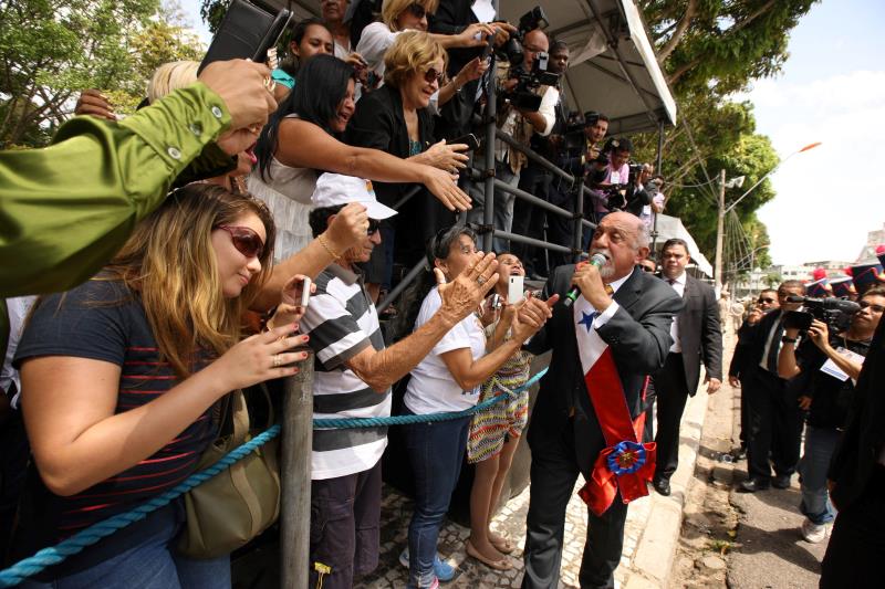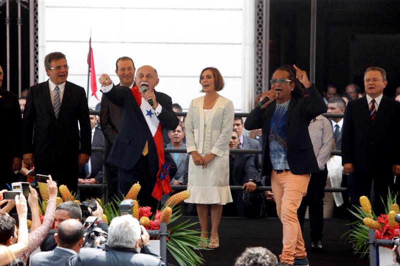 Após o encerramento da solenidade oficial de posse, o governador Simão Jatene e o vice-governador Zequinha Marinho seguiram a pé em direção ao palanque montado em frente ao Palácio Lauro Sodré. No caminho, dezenas de pessoas aplaudiram e abraçaram o governador eleito.