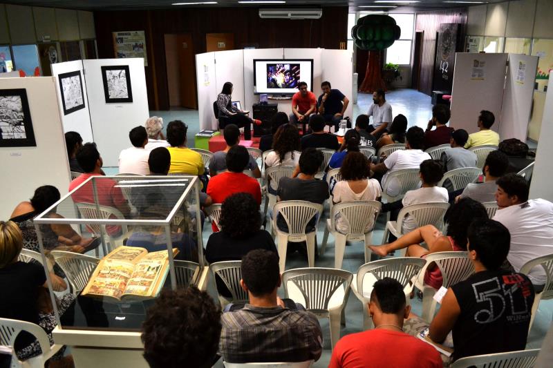 Um bate-papo sobre a relação entre os quadrinhos e a literatura marcou a abertura da Semana do Quadrinho Nacional, na Biblioteca Arthur Vianna, que teve como convidados a escritora Robert Spindler, Fábio Nahon e André Ciderfão. A programação prossegue até 30 de janeiro, no Centur, onde também está montada, no segundo andar, a exposição Made In Pará, que reúne quadrinhos produzidos no Estado desde 1937 até os dias de hoje, destacando artistas como Joe Bennett, Jack Jadson, Rafael Lanhelas e Carlos Paul.