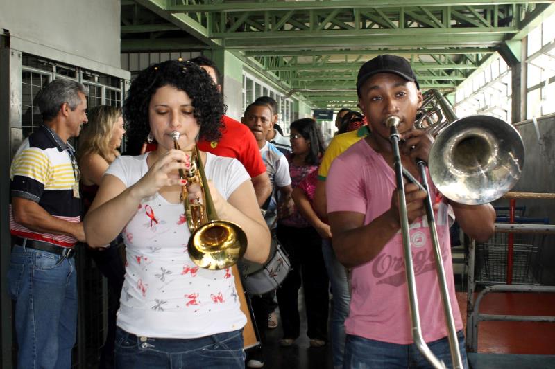 Na manhã de quinta-feira (12), a banda Branca de Neve abriu a programação tocando marchinhas de carnaval em diversos setores, como administração, clínicas psiquiátrica e pediátrica e UTI coronariana. Os brincantes, formados por servidores, usuários e crianças, alguns fantasiados, se concentraram no hall de entrada. Enquanto isso, uma palestra foi apresentada aos usuários que aguardavam o horário de consulta. Eles receberam, ainda, folders e preservativos.
