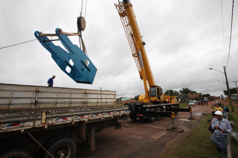 Operários da empresa de engenharia responsável pela reconstrução da ponte Moju Cidade, que integra a Alça Viária, já começaram a montagem do A-Frame, equipamento desenvolvido especialmente para a retirada das "línguas" de concreto, que estão penduradas desde a colisão de uma balsa com um dos vãos da ponte, em março do ano passado. A primeira parte do equipamento - que tem quase sete metros de altura, 14m de comprimento e 2,40m de largura - chegou ao município de Moju, no nordeste paraense, no final da noite de quinta-feira, 19, três dias depois de ter saído de São Paulo.