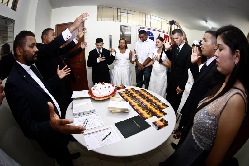 Quatro detentos custodiados no Centro de Recuperação Penitenciário do Pará I (CRPP I), em Santa Isabel do Pará, trocaram alianças com as companheiras durante cerimônia civil e religiosa de casamento celebrada na unidade prisional nesta sexta-feira, 17. Dezenas de familiares dos casais lotaram a sala onde ocorreu a celebração, promovida pela Associação Beneficente de Capelania Social (Abecas) em parceria com a Superintendência do Sistema Penitenciário do Pará (Susipe).