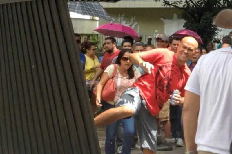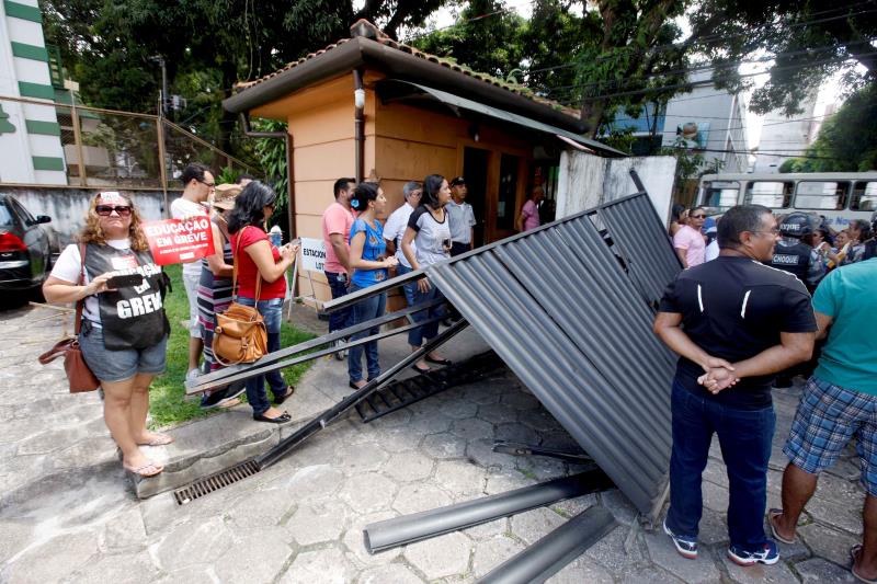 Um grupo de manifestantes do Sindicato dos Trabalhadores em Educação Pública do Pará (Sintepp) invadiu na manhã desta terça-feira, 12, o Centro Integrado de Governo (CIG), no bairro de Nazaré. A invasão se deu de forma violenta: por volta das 10h30, os manifestantes arrombaram o portão do estacionamento, que dá acesso à avenida Governador José Malcher, e se concentraram na área externa do prédio e no hall de entrada, gritando palavras de ordem. No mesmo momento, estava sendo realizada uma audiência pública para discussão de propostas ao Plano Estadual de Educação (PEE), no Centro de Convenções Ismael Nery, do Centur. (Leia mais em Audiência pública propõe diretrizes ao Plano Estadual de Educação).