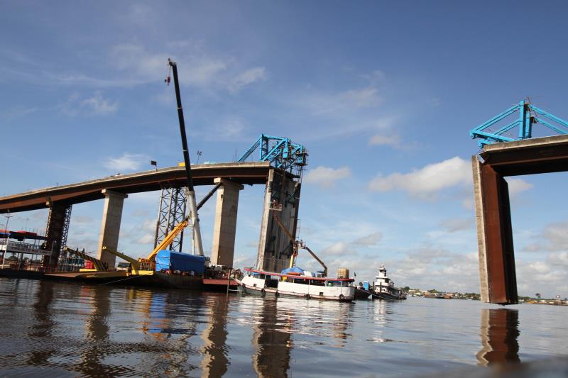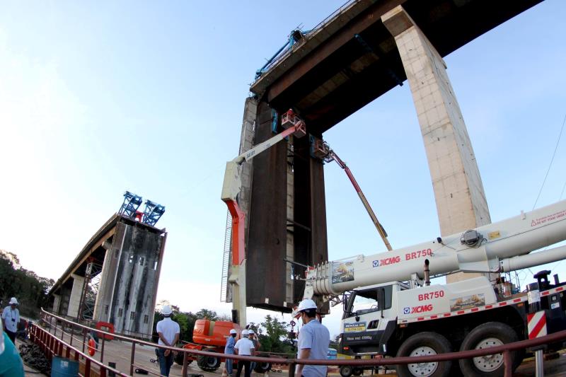 As obras de instalação do primeiro A-Frame estão a ponto de conclusão. O cronograma aumenta por questões naturais, como os ventos fortes e chuvas intensas que têm afetado a região. A operação é complexa e é preciso priorizar a segurança dos trabalhadores. Assim que a língua da ponte, do lado da cidade, for retirada começa o mesmo processo com a segunda língua.