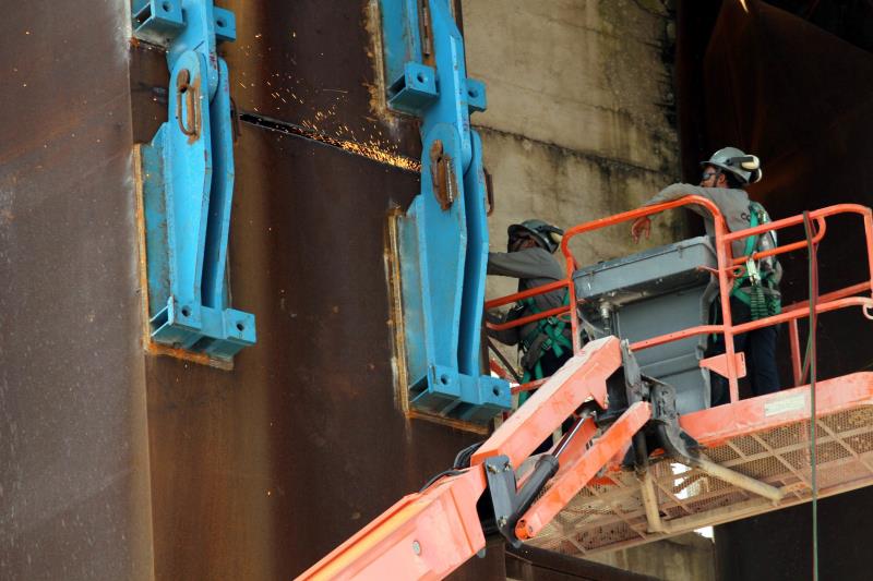 Após a retirada dos escombros pendurados, começa a retirada da parte comprometida da ponte. “Assim que concluirmos os desmontes dessas duas estruturas vamos iniciar o desmonte dos trechos que aparentemente estão intocados, mas estão comprometidos pelo impacto. Depois de tudo tirado, começamos a montar, um processo bem mais rápido. A estrutura mista, metálica e concreto, já está sendo fabricada para a construção da ponte”, revela o secretário.