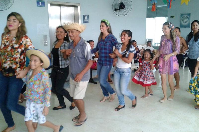 Embalados pela música típica desta época do ano, e vestindo roupas enfeitadas, pacientes, responsáveis e funcionários da Fundação Hospital de Clínicas Gaspar Vianna, participaram do arraial que marcou o início dos festejos da quadra junina. O "Arraiar Curumim Pé na Roça” coloriu, na manhã desta quinta-feira, 18, o ambiente hospitalar da Clínica Pediátrica, e contou com brincadeiras, quadrilha junina, correio da amizade e as deliciosas comidas típicas. “O andar mais bonito do hospital se enfeitou ainda mais hoje. Olhar todos vestidos à caráter é mais gostoso ainda”, comentou a diretora-presidente do hospital, Dra. Ana Lydia Cabeça.
