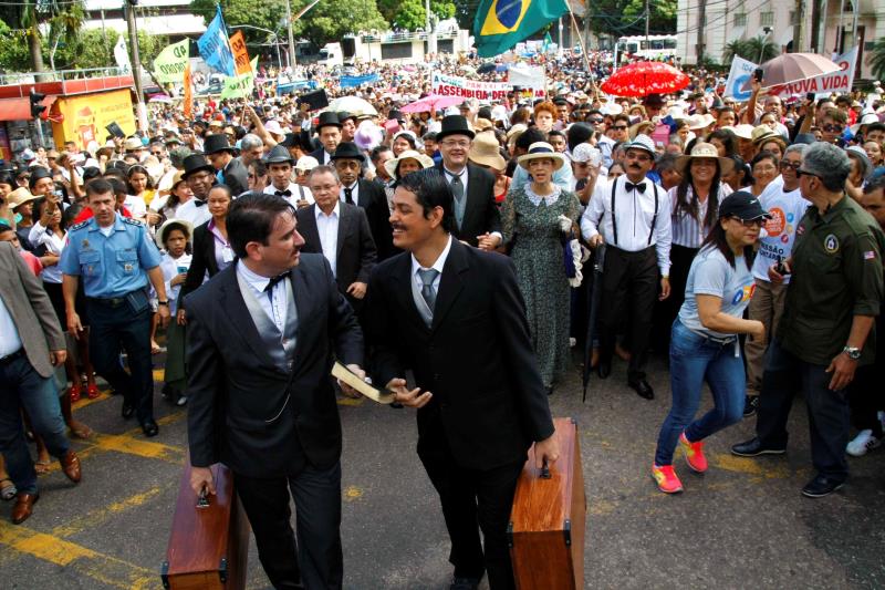 Durante a manhã, o governador em exercício participou da reconstituição da chegada dos suecos Daniel Berg e Gunnar Vingren, fundadores da igreja em Belém, ao Estado. Ele participou da encenação ao lado do pastor Samuel Câmara, Rebekah Câmara, do deputado Raimundo Santos e outras lideranças evangélicas, desde a escadinha do cais do porto, na Estação das Docas, percorrendo a Avenida Presidente Vargas, até a Praça da República, onde foi realizado o primeiro culto da Assembleia de Deus no Pará.
