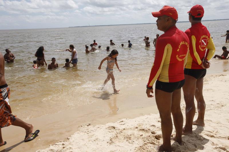 A manhã de sol intenso deste sábado, 4, que marca de fato a abertura do primeiro final de semana do veraneio paraense, levou uma grande quantidade de pessoas às praias do distrito de Outeiro, na Região das Ilhas de Belém. Na Praia Grande, por exemplo, uma das mais tradicionais do distrito, devido à maré cheia, a faixa de areia próxima da água foi disputada pelas famílias, sobretudo no final da manhã. E para garantir a segurança dos veranistas, um aparato especial foi montado pelos órgãos de segurança. Somente a Polícia Militar destacou um reforço de 400 homens, divididos entre os turnos da manhã e tarde.