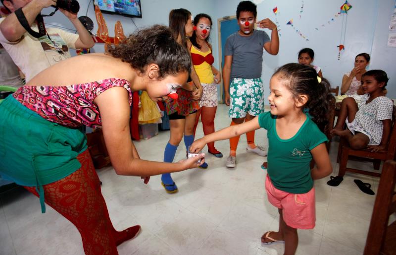 Toda semana os estudantes Ruber Sarmento, 20, Isadora Lourenço, 23, Kahwana Pantoja, 21, e Bianca Caldas, 20, trocam as roupas habituais por um figurino extravagante e colorido. Tudo para garantir a diversão das crianças internadas na ala pediátrica do Hospital de Clínicas, em Belém. Com os rostos pintados e o carcterístico nariz de palhaço, o grupo dá vida à Trupe dos Curativos, composta pela “Tupinha 220 Volts”, o “Trapo”, a “Oferecida” e a “Nuvem”. Durante as visitas voluntárias, eles envolvem pais, crianças e até os funcionários em uma atmosfera de alegria e bem estar, com as brincadeiras que fazem.