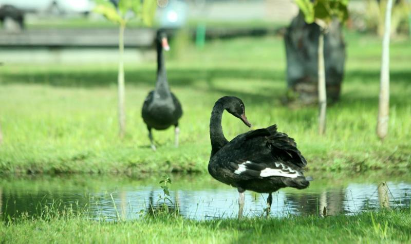 Com porte elegante e graciosidade, o Cisne Negro (Cygnus atratus) é um animal que chama a atenção em qualquer ambiente. A espécie faz parte da paisagem externa do Hangar Convenções e Feiras da Amazônia, habitando o lago que cerca o centro de eventos. Na última segunda-feira (24), três cisnes se juntaram aos seis que já estavam no local, após temporada de observação e cuidados no Mangal das Garças.