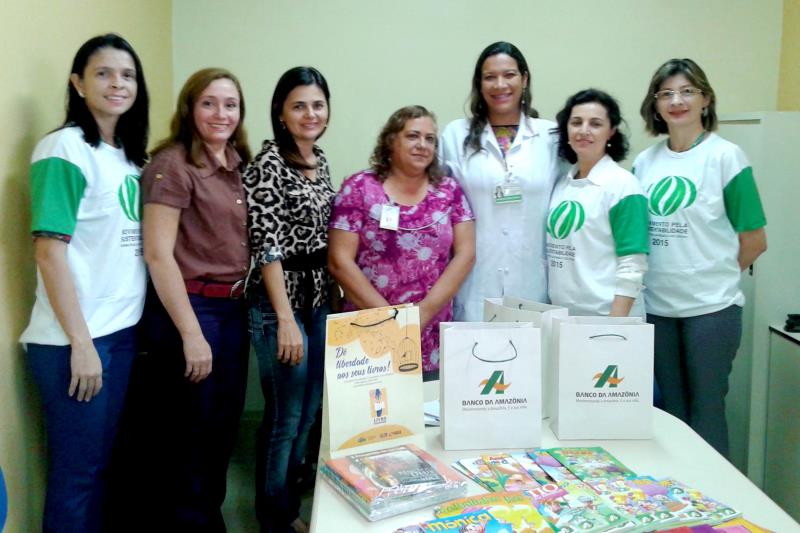 A equipe do Basa formada pelas bancárias Lilian Lima, Ana Cláudia Alves e Idalina Alves, foi acompanhada pelas técnicas do Livro Solidário, Marluce Oliveira e Lucila Girão.