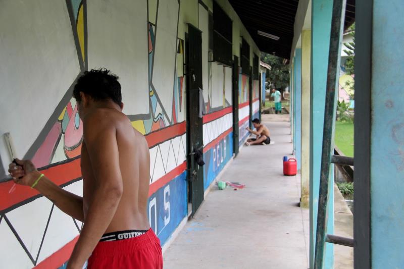 Além de garantir experiência profissional, a oficina ajuda na revitalização de três das unidades da Fundação de Atendimento Socioeducativo do Pará (Fasepa). Além do Cesem, a atividade é desenvolvida no Centro de Internação Jovem Adulto Masculino (Cijam) e também no Centro Socioeducativo Feminino (Cesef). Meninos e meninas são selecionados de acordo com o desenvolvimento das medidas socioeducativas. O arte educador do Cesem, Augusto Fonseca, responsável pela oficina de pintura, diz que a atividade une o útil ao agradável.