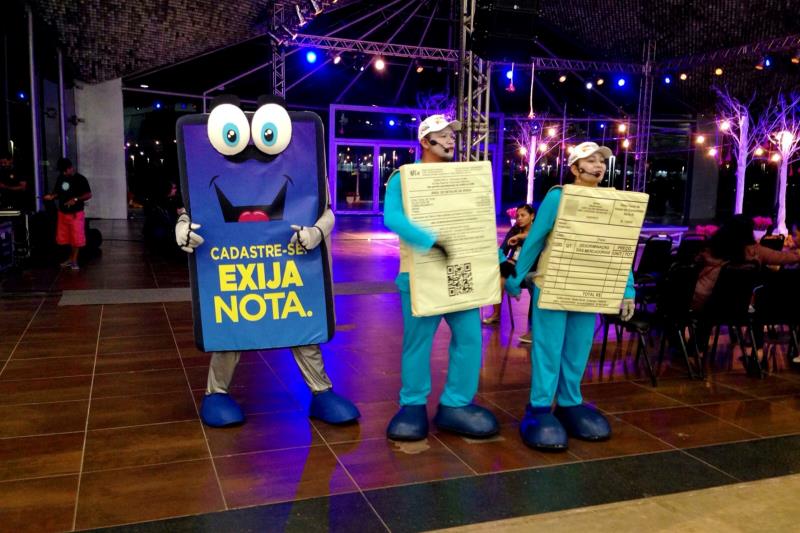 Quem participou da programação do 3º Festival Internacional de Chocolate e Cacau da Amazônia na noite da sexta-feira (18), no Hangar Convenções e Feiras da Amazônia, foi surpreendido ao ver, entre as atrações, o mascote do Programa Nota Fiscal Cidadã. Numa rápida performance, os bonecos do programa de estímulo à cidadania falaram sobre ser o que é ser bom cidadão e encerraram a participação no evento cantando e dançando.