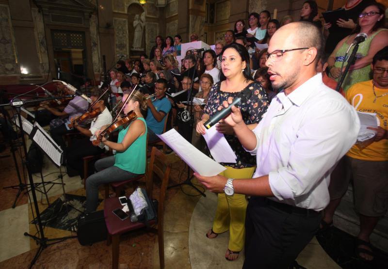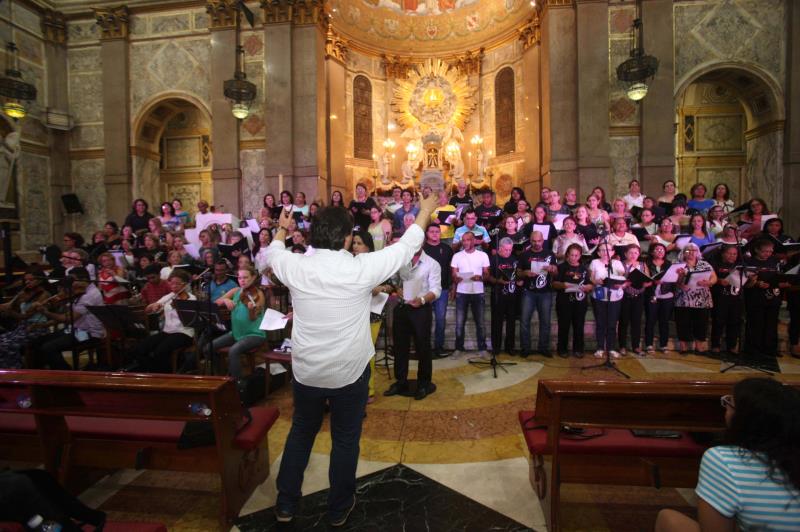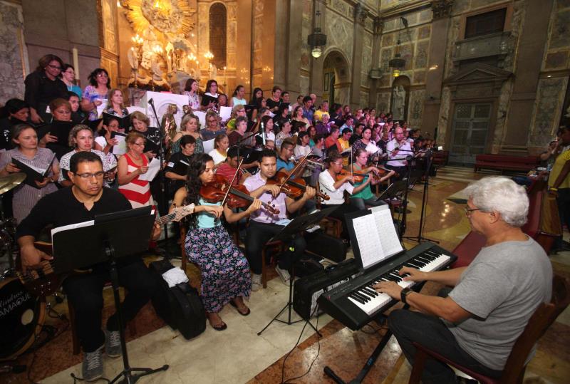 Já passava das 22h de terça-feira, 6, quando começaram os testes de voz e som para o concerto “Um Canto para Maria”, que reunirá corais de diversos órgãos e instituições públicas em um grande espetáculo em homenagem à Virgem de Nazaré. A apresentação será na noite desta quarta, 7, na Basílica Santuário, a partir das 20h. Quem passou pela praça santuário nesse horário teve a oportunidade de acompanhar o ensaio dos cantores e músicos.