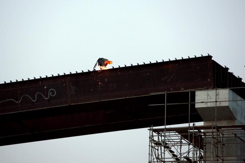 O pedreiro Carlos Nunes sai de cena à boca da noite, observando as faíscas que se projetam à sombra dos soldadores e se derramam no ar feito uma cachoeira, até se desmancharem em torno daquele retângulo de concreto 15 vezes mais alto do que os operários que o rebocaram. É um olhar de dever cumprido, na complexa engenharia de reconstrução da ponte em que várias etapas se sucederam por mais de 600 dias, conectando o labor dos homens ao valor da tecnologia.