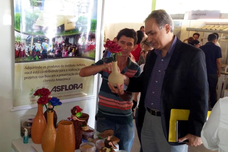 A estudante de Terapia Ocupacional Glória Santos se interessou pelo estande da Casa dos Empreendedores de Bragança, que está expondo produtos obtidos com recursos da região, como a tradicional farinha, a cerâmica de argila de mangue e os artesanatos de escamas de peixes. “Achei muito interessante o novo uso que eles estão dando à escama de peixe que seria descartada e, ainda por cima, gerando renda para as pessoas da região”, falou a visitante.