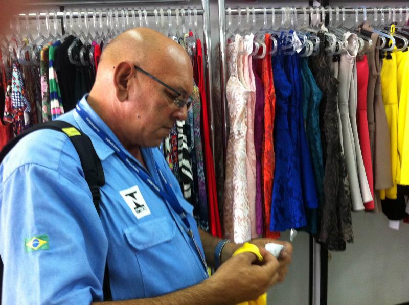 Na compra de roupas verifique a existência da etiqueta têxtil obrigatória, na qual devem estar descritas o nome, marca ou razão social do fabricante ou importador, identificação fiscal (CNPJ), país de origem, tamanho ou dimensões, composição têxtil e símbolos ou textos de tratamento e cuidados para conservação do produto.