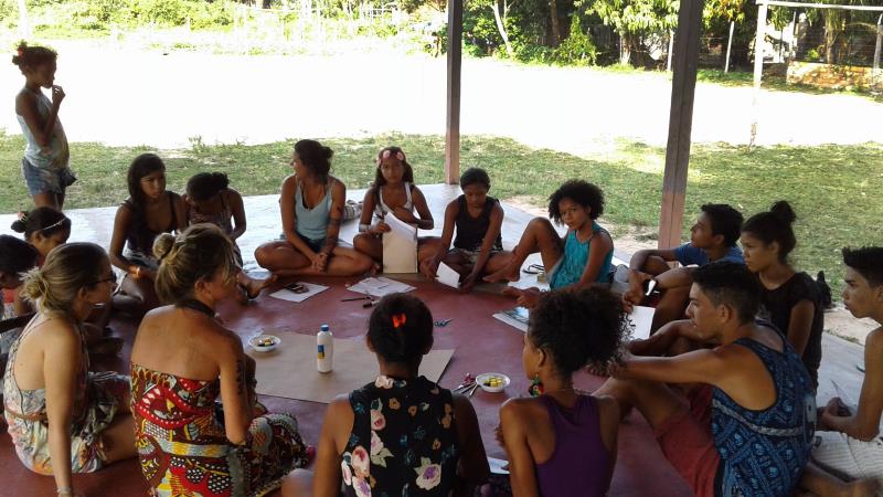 “Eu pensei nessas oficinas, de forma em que elas misturassem elementos imagéticos e literários com o objetivo não de ensinar, mas de mostrar uma narrativa que eu vinha desenvolvendo e que essas pessoas de Soure pudessem desenvolvê-las também a partir desse alicerce, desse diálogo, entre imagem e literatura”, diz Gabriela Sobral.