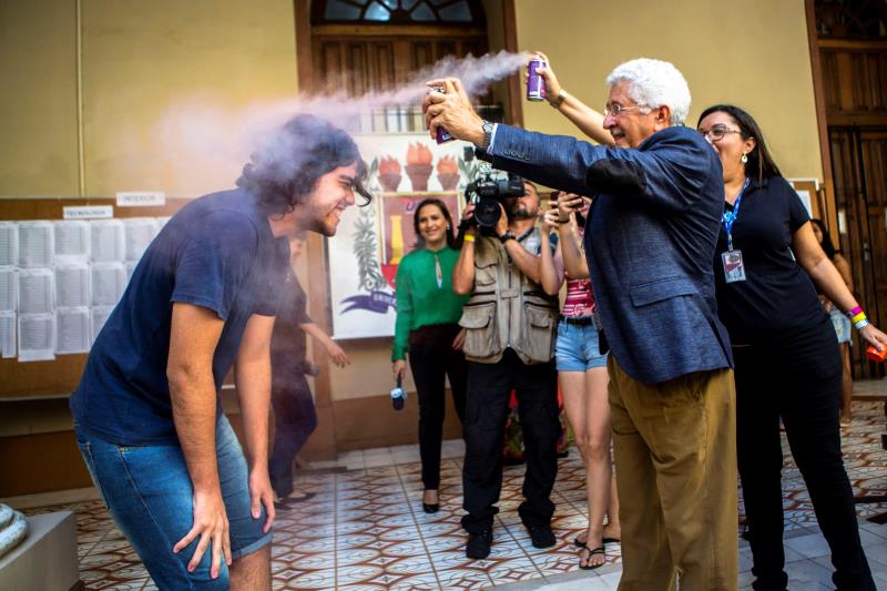 Renan Macedo também conseguiu a aprovação em Licenciatura em Matemática depois de estudar por dois anos. O primeiro trote de comemoração que recebeu foi dado pessoalmente pelo reitor Rubens Cardoso, que coloriu de azul e vermelho o cabelo do calouro. “Além da grande felicidade de ter passado, ainda festejei com o reitor. Me senti único, porque ele é o cara”, exaltou.