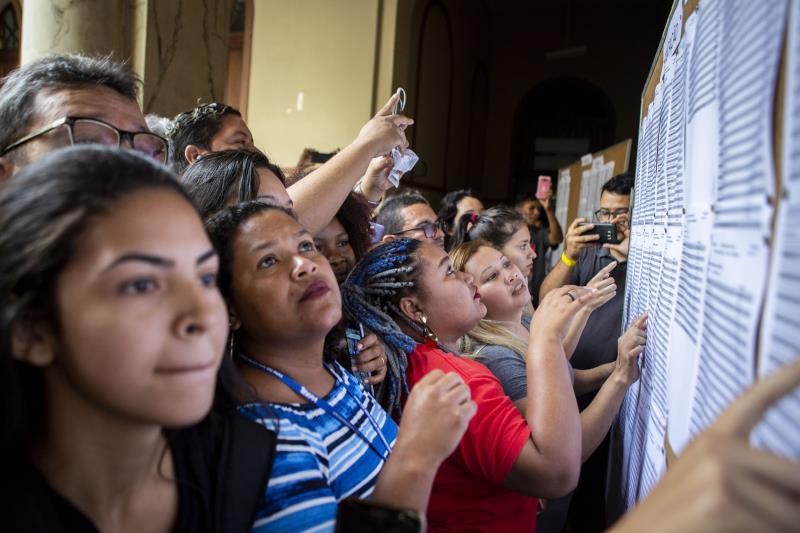 Ao mesmo tempo em que os envelopes lacrados eram trazidos escadarias abaixo para as rádios, o listão era afixado nos painéis. Não demorou para se ouvirem gritos e choros. O de Tatiane era um deles. O filho Pedro Lucas Batalha Marcelino foi aprovado no curso de Biomedicina.