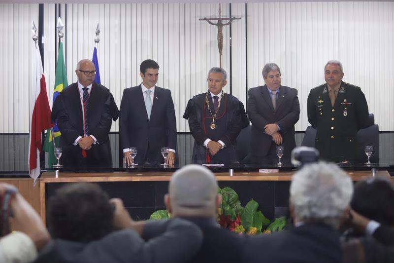 Além do chefe do Executivo estadual e seu vice, a mesa da Sessão Plenária Extraordinária foi composta pelos desembargadores Roberto Moura e Luzia Nadja Guimarães; os juízes Arthur Pinheiro Chaves, Amílcar Roberto Bezerra, Altemar da Silva Paes, José Alexandre Buchacra, Luzimara Costa Moura; o procurador José Augusto Potiguar; o desembargador e presidente do Tribunal de Justiça do Pará, Ricardo Ferreira Nunes; a representante da OAB Bruna Bezerra; e o General Anisio David de Oliveira Jr, representando as forças armadas.