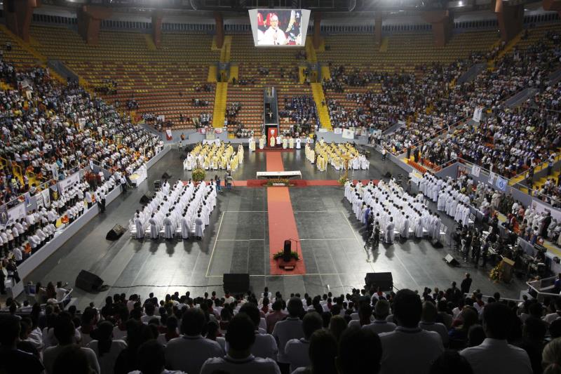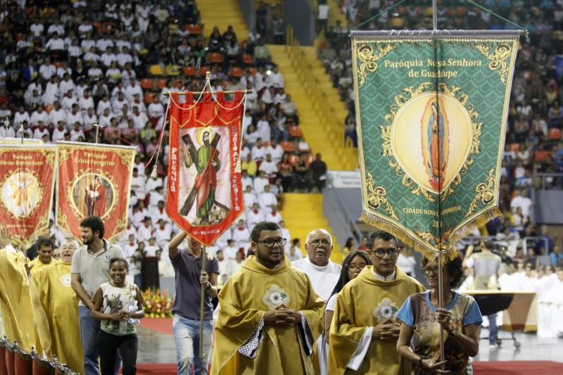 "Esta é uma oportunidade para todos os fiéis renovarem seu compromisso missionário, formando uma Igreja que olha para a frente e para o alto, com a missão de evangelizar a partir de Jesus Cristo e com a força do Espírito Santo", diz um trecho da mensagem papal, bastante aplaudido pelo público, composto por paroquianos de todas as áreas de Belém.