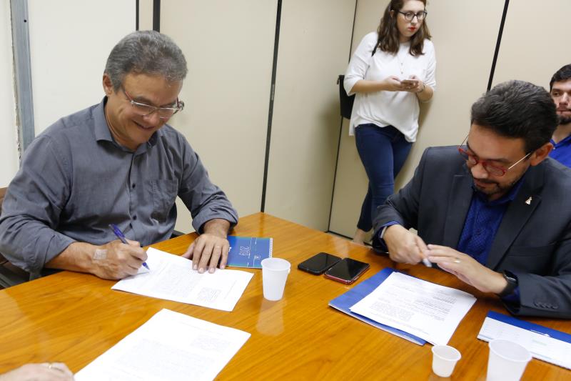 O prefeito Zenaldo Coutinho e o secretário da Sefin, José Capeloni, durante a assinatura do convênio (Foto: Alessandra Serrão - NID/Comus)