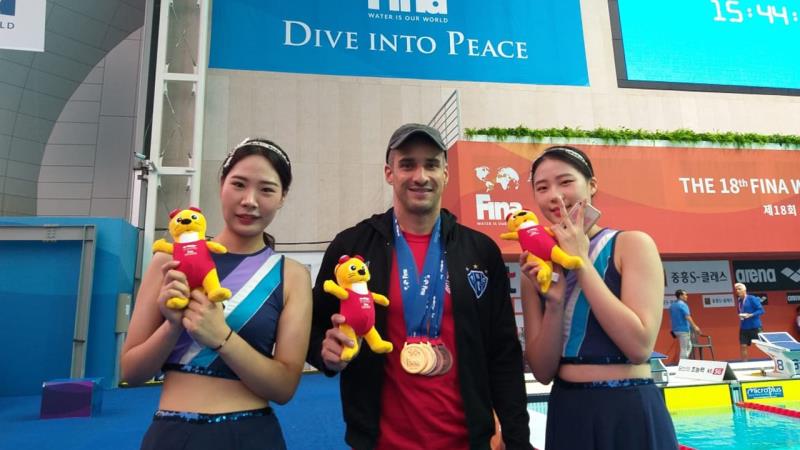 Durante o Campeonato Mundial Master de Esportes Aquáticos, realizado no início desse mês em Gwangju, na Coreia do Sul, o Brasil brilhou. Na delegação brasileira, o paraense Filipe Faraon, 36, patrocinado pela Prefeitura de Belém e pelo Paysandu, subiu ao pódio nada menos que em cinco oportunidades. Em meio às conquistas, foram duas medalhas de ouro com direito a recorde quebrado.