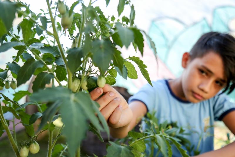 O estudante Paulo André é um, entre as centenas de alunos da rede municipal de ensino, que fazem parte do projeto “Educando com a Horta e Gastronomia na Escola”, desenvolvido pela Prefeitura de Belém, em parceria com a Fundação Municipal de Assistência ao Estudante (Fmae).