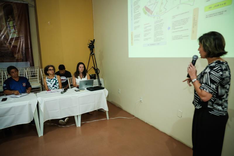 A coordenadora do Programa do Saneamento Básico da Bacia da Estrada Nova (Promaben), Luciana Vasconcelos, iniciou a reunião com a apresentação das etapas do Promaben, que visa contribuir para resolver os problemas socioambientais que afetam os habitantes da Bacia Hidrográfica da Estrada Nova.
