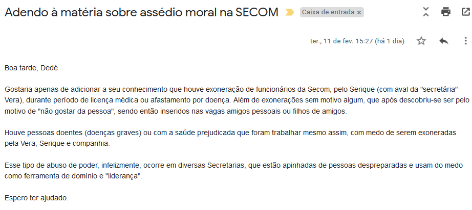 Desde terça-feira, dia 11, este site está à espera de que haja um pronunciamento da Secretaria de Comunicação do Estado do Pará (Secom)/Agência Pará sobre as denúncias de assédio moral dentro dessa Secretaria, promovido pelo trio que 'gerencia' a Secom, a saber, Vera, Fernanda e Serique.