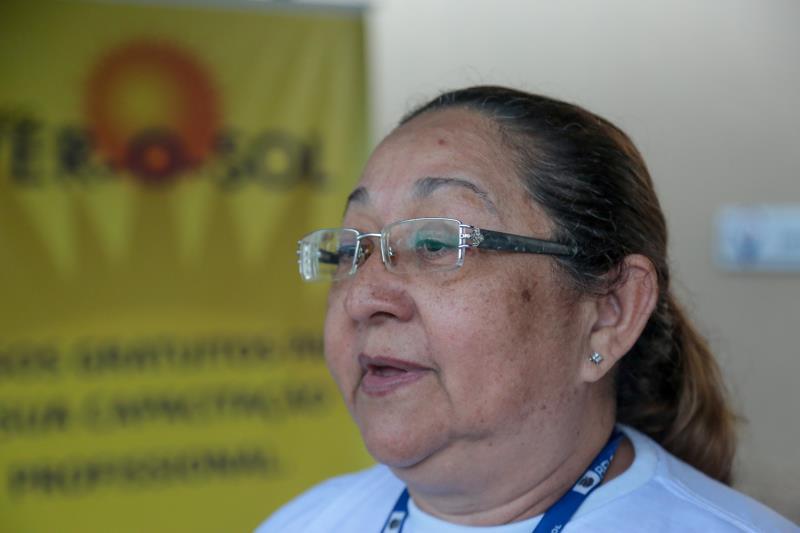 “Estamos aqui para informar sobre nossa programação de treinamentos como de camareira, atendente de farmácia, auxiliar administrativo e garçon e garçonete”, informou a coordenadora geral do Fundo Ver-o-Sol, Carmen Mendes.