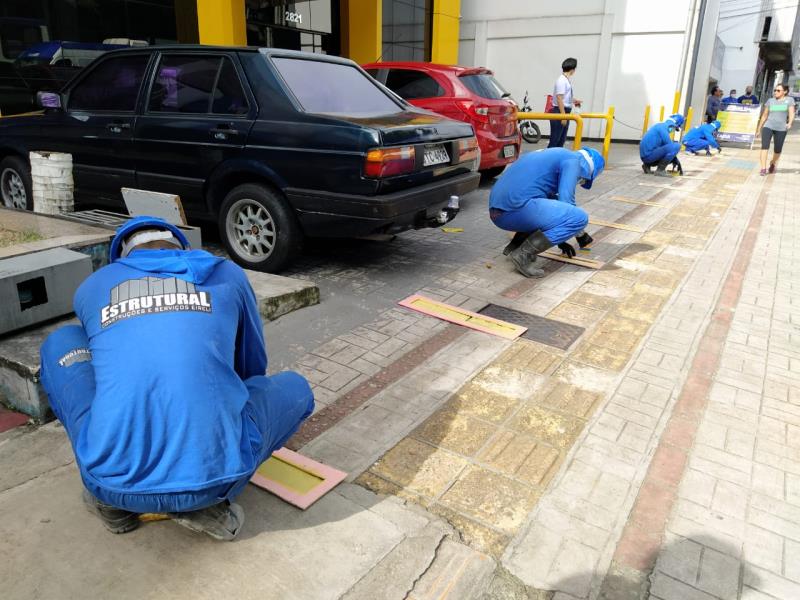Para evitar aglomeração de cidadãos e combater a proliferação do novo Coronavírus em Belém, em frente a órgãos e bancos que estejam com grande demanda de público, a Secretaria Municipal de Urbanismo começou, nesta segunda-feira, 13, a realizar demarcações nas calçadas delimitando a distância segura entre as pessoas.