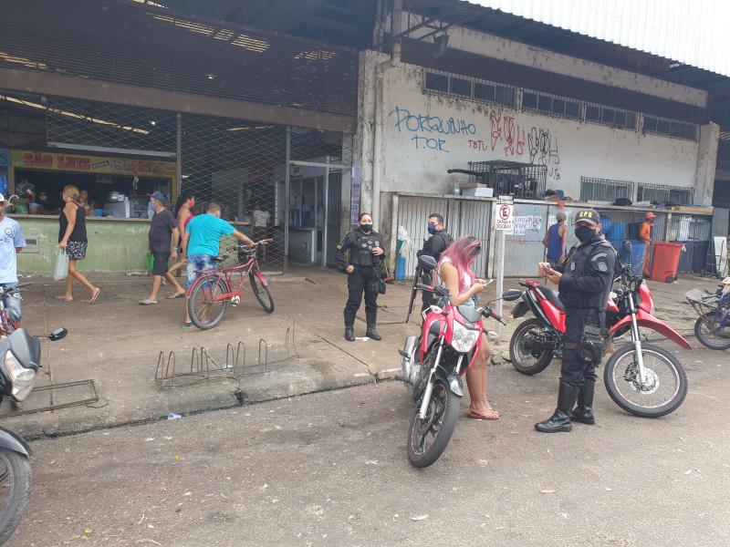 Operação - Durante a ação na feira, além do ordenamento e retirada de entulho, 20 condutores de motos foram multados por irregularidades, dez pessoas que estavam sem máscaras foram abordadas e orientadas.