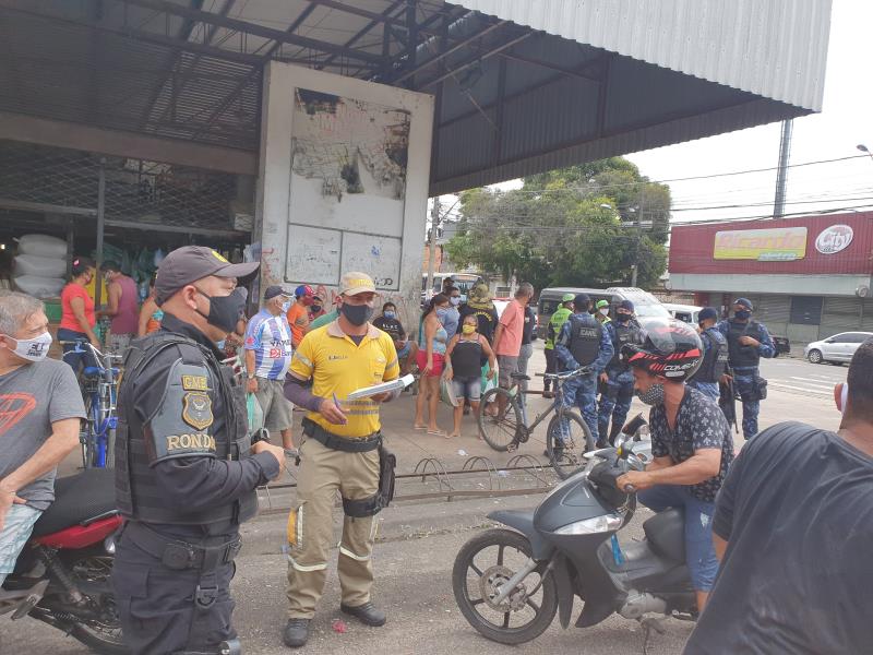 A feira do bairro do Guamá foi alvo de fiscalização na manhã desta sexta-feira, 15. A ação faz parte das medidas de enfrentamento à pandemia no município, desenvolvidas pela Prefeitura de Belém, através das equipes do Comitê de Segurança Municipal.