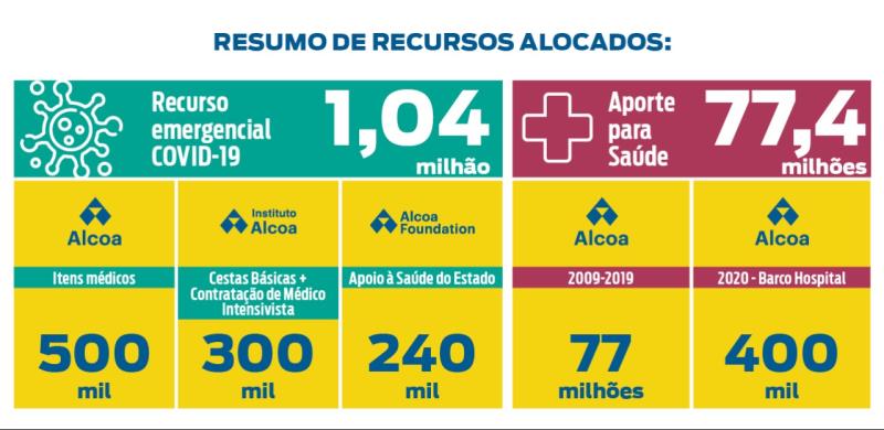 Muito antes da pandemia global, a Alcoa já vinha dedicando atenção especial para a saúde no município de Juruti. Nos últimos 10 anos, desde a chegada da empresa a Juruti, foram R$ 77 milhões investidos. O valor foi usado na construção, aquisição de equipamentos e gestão do Hospital 9 de Abril, assim como ampliação e estruturação do Hospital Municipal, das Unidades Mistas de Saúde de Juruti Velho e Tabatinga, e das Unidades Básicas de Saúde em diversos bairros de Juruti.