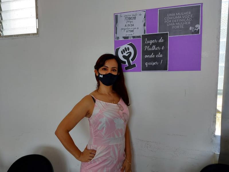 Experiências - Danielle Dias trabalha no Departamento de Feiras e Mercados da Secon há sete anos e compartilhou as dificuldades que enfrentou como mulher. “Já passei por muitas experiências ruins, desde relacionamentos abusivos, com violências física e psicológica, até um câncer que tive em 2019. Posso dizer que venci todas as etapas, com a ajuda de uma rede de apoio. Agora tento ensinar para a minha filha de 11 anos a lutar pelos ideais feministas”, destacou a funcionária.