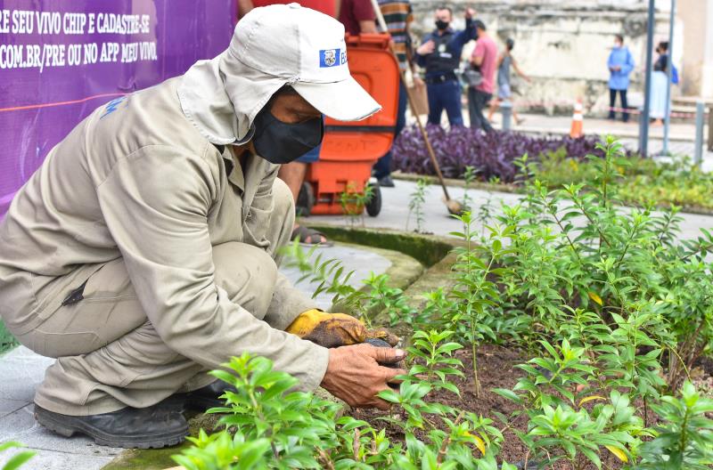 Área verde - A Secretaria Municipal de Meio Ambiente (Semma) também atuou nesta manutenção, recuperando a área verde da Praça das Mercês, que vai continuar recebendo cuidados. “O serviço não pode parar, então a Semma estará sempre presente nesse logradouro. Manter o verde daqui vai requerer muita manutenção”, disse o titular da pasta, Sérgio Brazão.