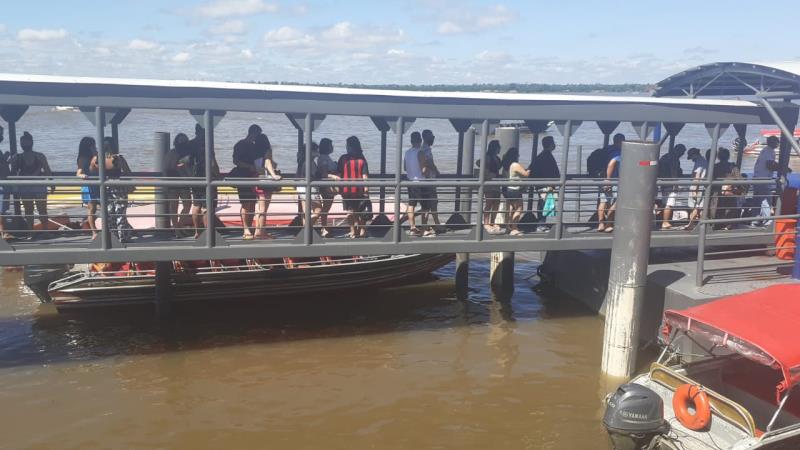 Os agentes de transporte também organizaram o embarque na rampa de acesso, com o objetivo de evitar aglomeração no flutuante e também informaram sobre a necessidade do uso de máscara e álcool em gel.