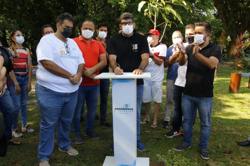 “Os bosques aqui do Conjunto Júlia Seffer, o Uirapuru e o Marajoara, devem ser vistos como ponto de referência, não só para os moradores do bairro de Águas Lindas, mas para todo o município de Ananindeua. A prefeitura tem que cada vez mais dar condições para que o morador de Ananindeua não precise sair de Ananindeua para ir a outros bosques ou em outras praças, e é isso que estamos fazendo ao assinar a ordem de serviço para realizar obra de revitalização destes espaços”, destacou o prefeito Doutor Daniel, que ainda aproveitou para realizar o plantio de uma muda da árvore Anani. O nome Ananindeua é de origem tupi e deve-se à grande quantidade da árvore no território do município.