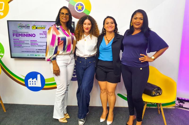 A Fenecan apresenta em suas lives temas que interessam não só aos expositores cadastrados como ao público em geral e interessados em abrir seu próprio negócio. Como mais de 50% dos expositores da Fenecan são mulheres empreendedoras, o bate papo desta quinta-feira (04), foi Empreendedorismo Feminino, e contou com a participação de quatro representantes de peso no ramo: Ely Ribeiro, co-founder da Donadelas (projeto voltado para empreendedorismo feminino) ; Nigmui Yara Bandeira, agente de desenvolvimento da Sala do Empreendedor da Semdec; Claudene Brito, proprietária da Eco Canaã Bio Joias; Vanda Lúcia, proprietária da Vanllu Multimarcas; contando com a mediação de Vitória Ohana, jornalista e Especialista em Branding e Marketing.