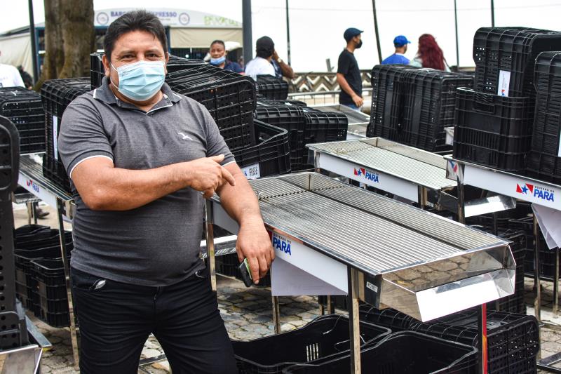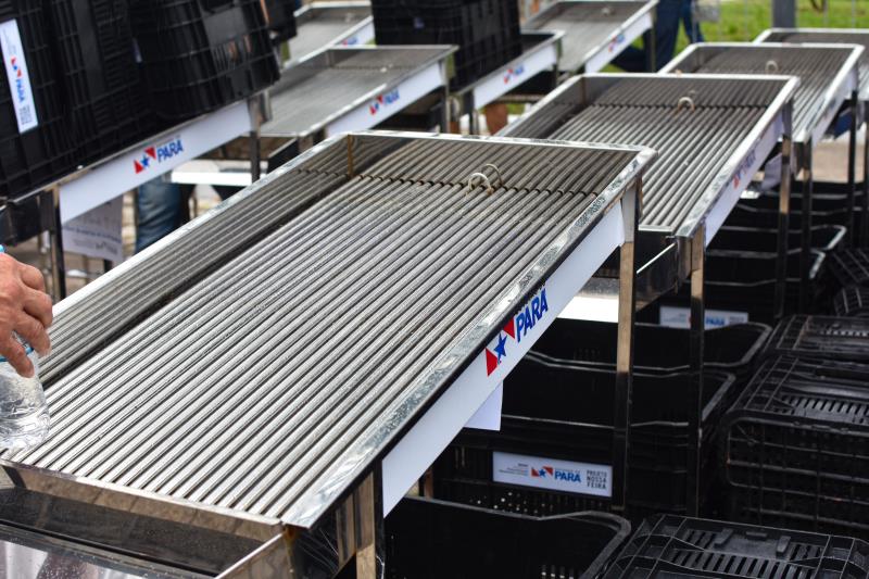 Ao todo, foram entregues no evento de aniversário de Belém 1.680 equipamentos, entre máquinas de branqueamento de açaí, mesas para peneiramento em aço inox e basquetas.