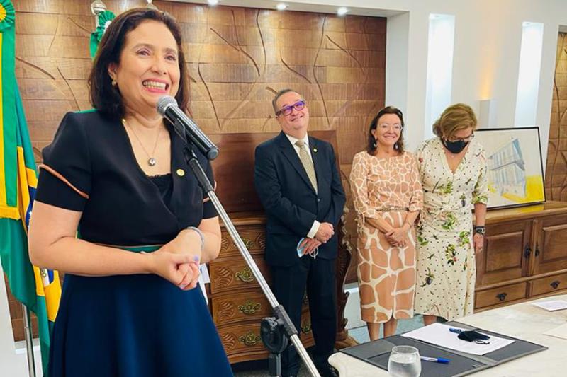 Após o juramento solene e tomando posse do cargo de desembargadora do Tribunal Regional do Trabalho da Oitava Região, a magistrada agradeceu emocionada a todos os presentes e falou da sua trajetória no Tribunal, dos desafios enfrentados em outras cidades, e agradeceu o apoio que sempre teve, desde do tempo da Universidade Federal do Pará, do seu marido, o também desembargador do TRT-8, Francisco Sérgio Silva Rocha.