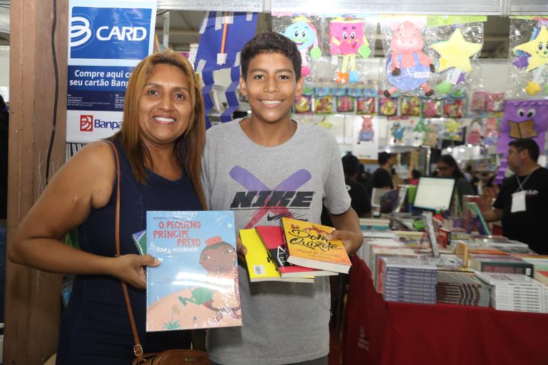 Nos três dias de evento, o volume de vendas do Bônus Livro foi de 20,25%. A assistente de professora da Semec Gisele Alves, de 47 anos, aproveitou o valor de R$ 200 para comprar um livro para o filho, Gabriel Alves, de 13 anos. O jovem saiu satisfeito com as novas aquisições literárias.