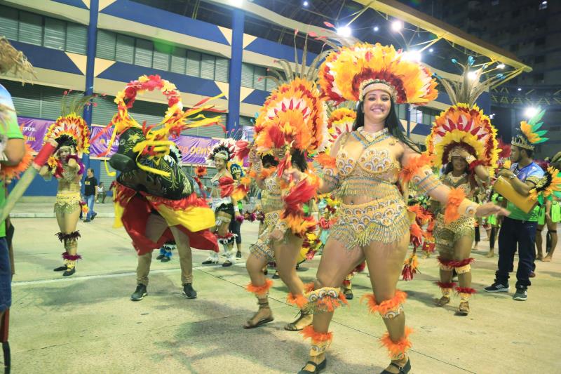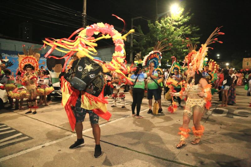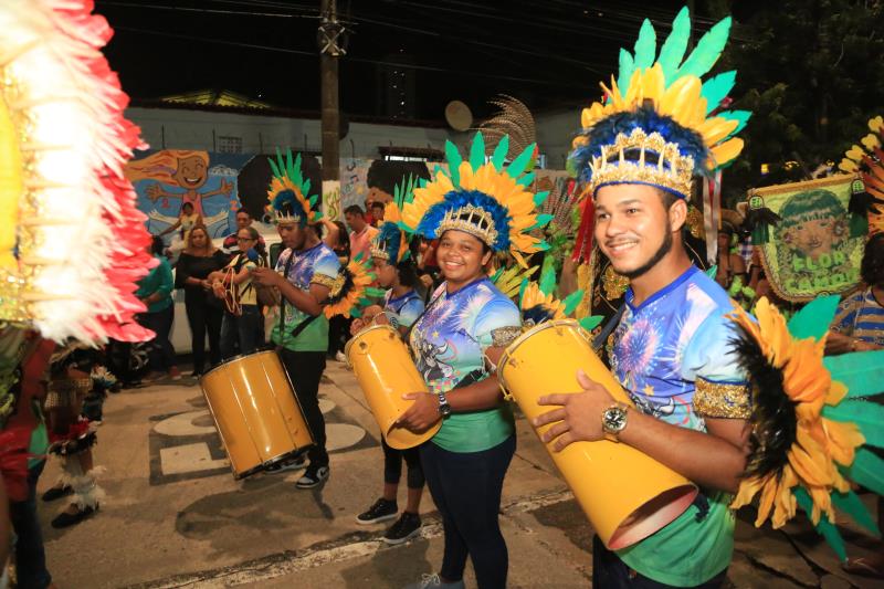 Um cortejo cultural abriu as apresentações na Aldeia. Os grupos de Bois, Toadas e Pássaros caminharam na avenida Pedro Miranda, próximo à travessa Lomas Valentinas, ao som do cantor Elói Iglesias, até o o palco montado dentro da Aldeia Cabana.