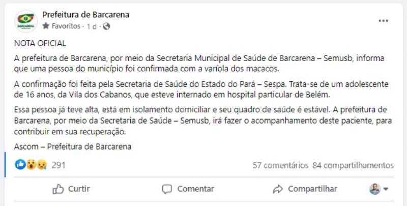 A prefeitura de Barcarena através da secretaria municipal de saúde emitiu nota oficial sobre o assunto: